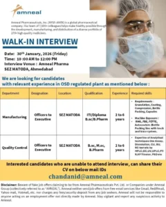 amneal pharma job opportunity January 26, 2026 by admin4444 Spread the loveamneal pharma job opportunity Location:ahmedabad