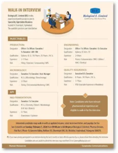 biological e walk in interview January 30, 2026 by admin4444 Spread the lovebiological e walk in interview Location:Hyderabad