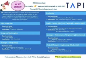 tapi pharma job opportunity October 29, 2025 by admin4444 Spread the lovetapi pharma job opportunity Location:Malanpur,gajurala,Noida